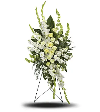 An elegant expression of sympathy, this wondrous white and green spray conveys purity and peace. A glorious choice for a magnificent memorial.